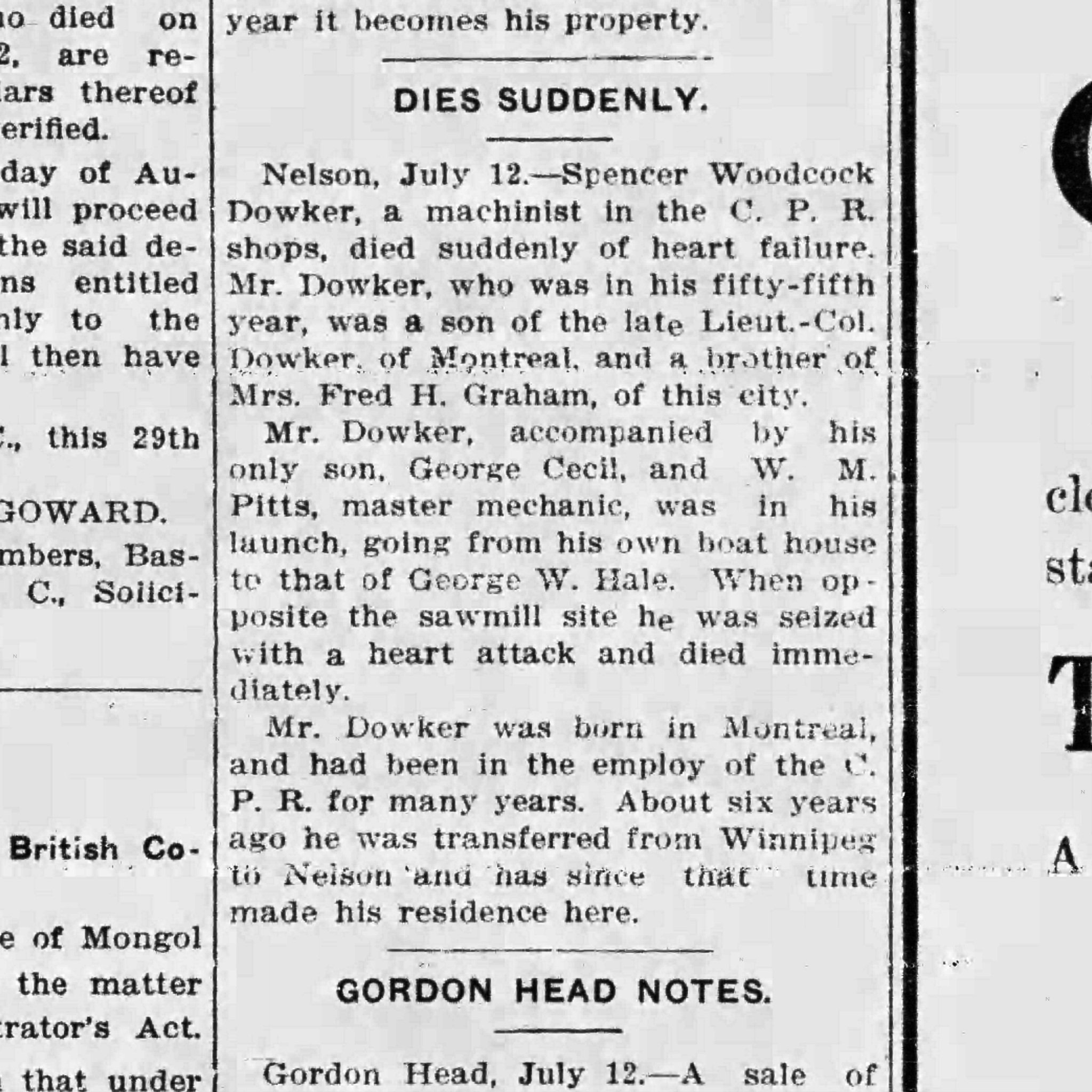 Spencer W. Dowker, source: the Victoria Daily Times, July 12, 1912