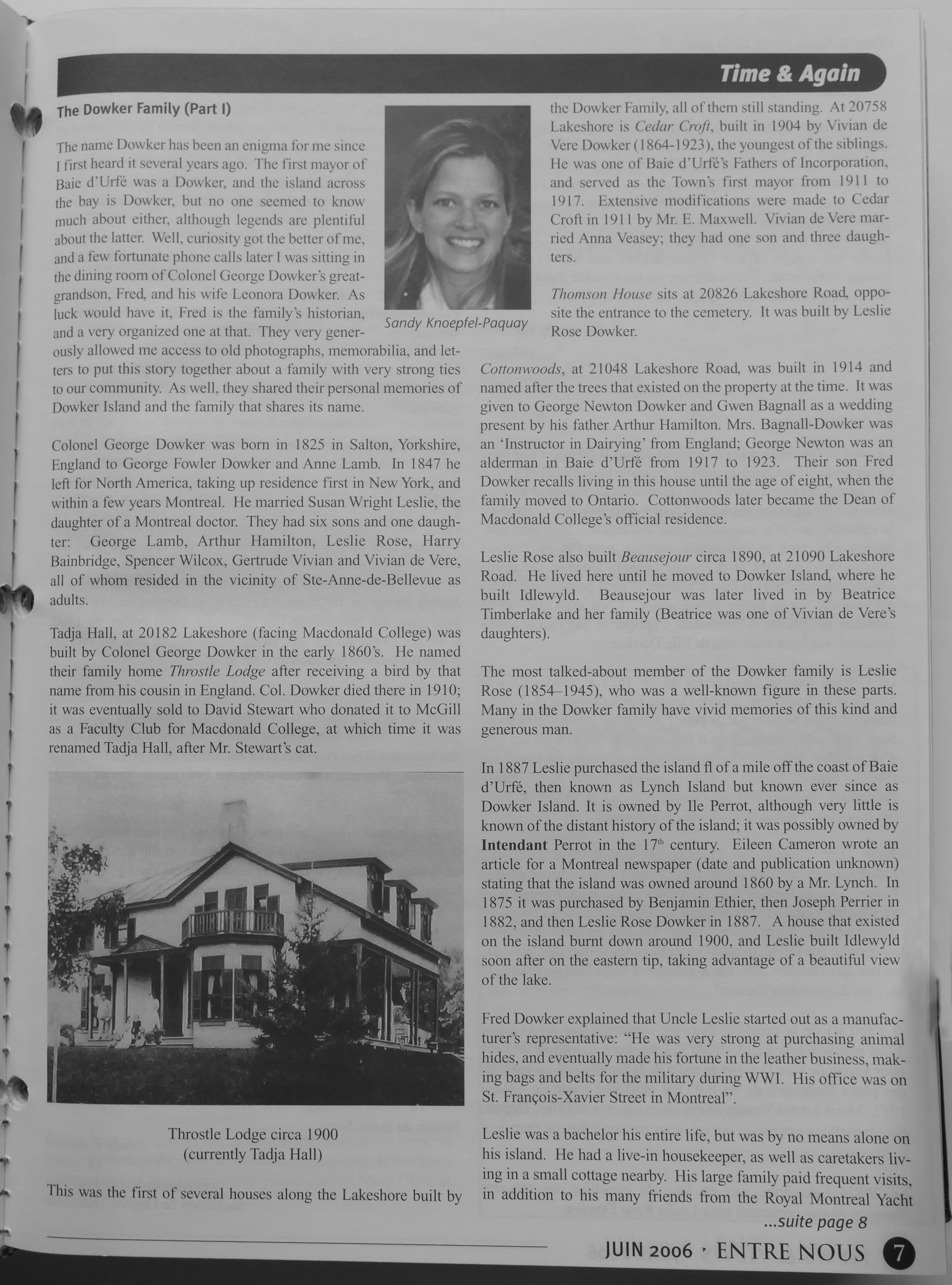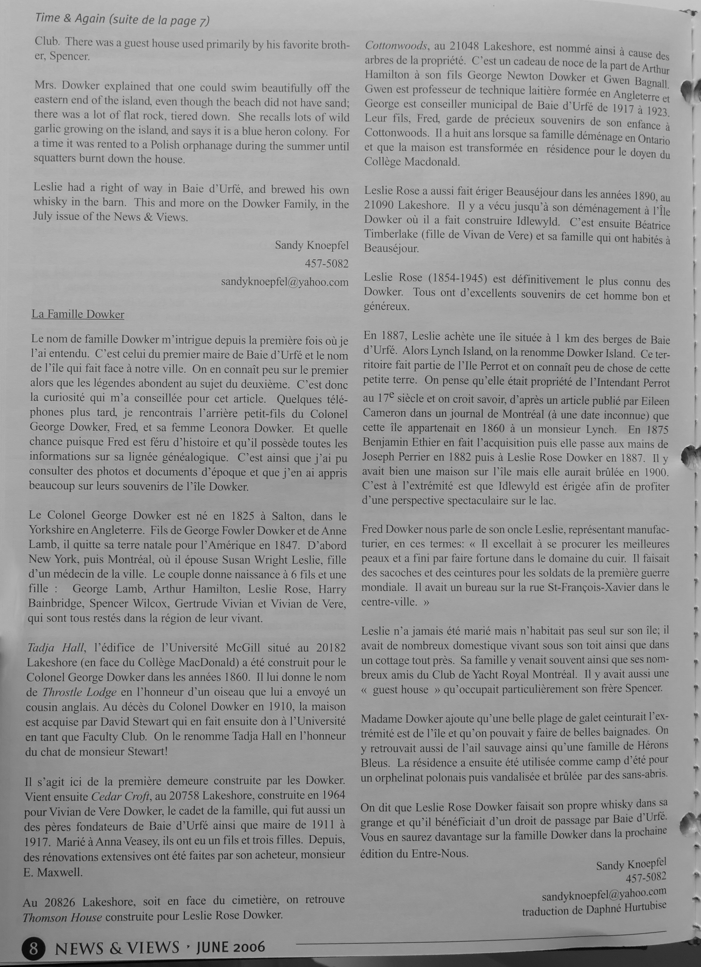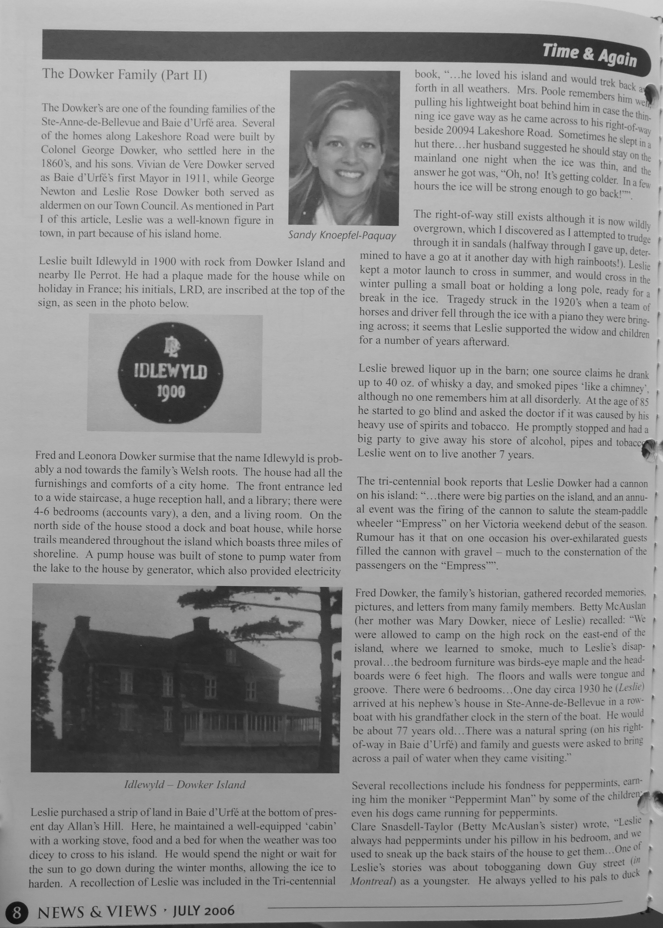 Sandy Knoepfel wrote in the summer of 2006 two articles about the Dowker family in News & Views.