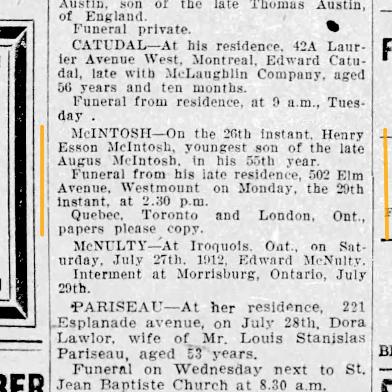 McIntosh = Henry Esson McIntosh (1857-1912), born in Montreal, married to Bridget Burns (1861-1925)