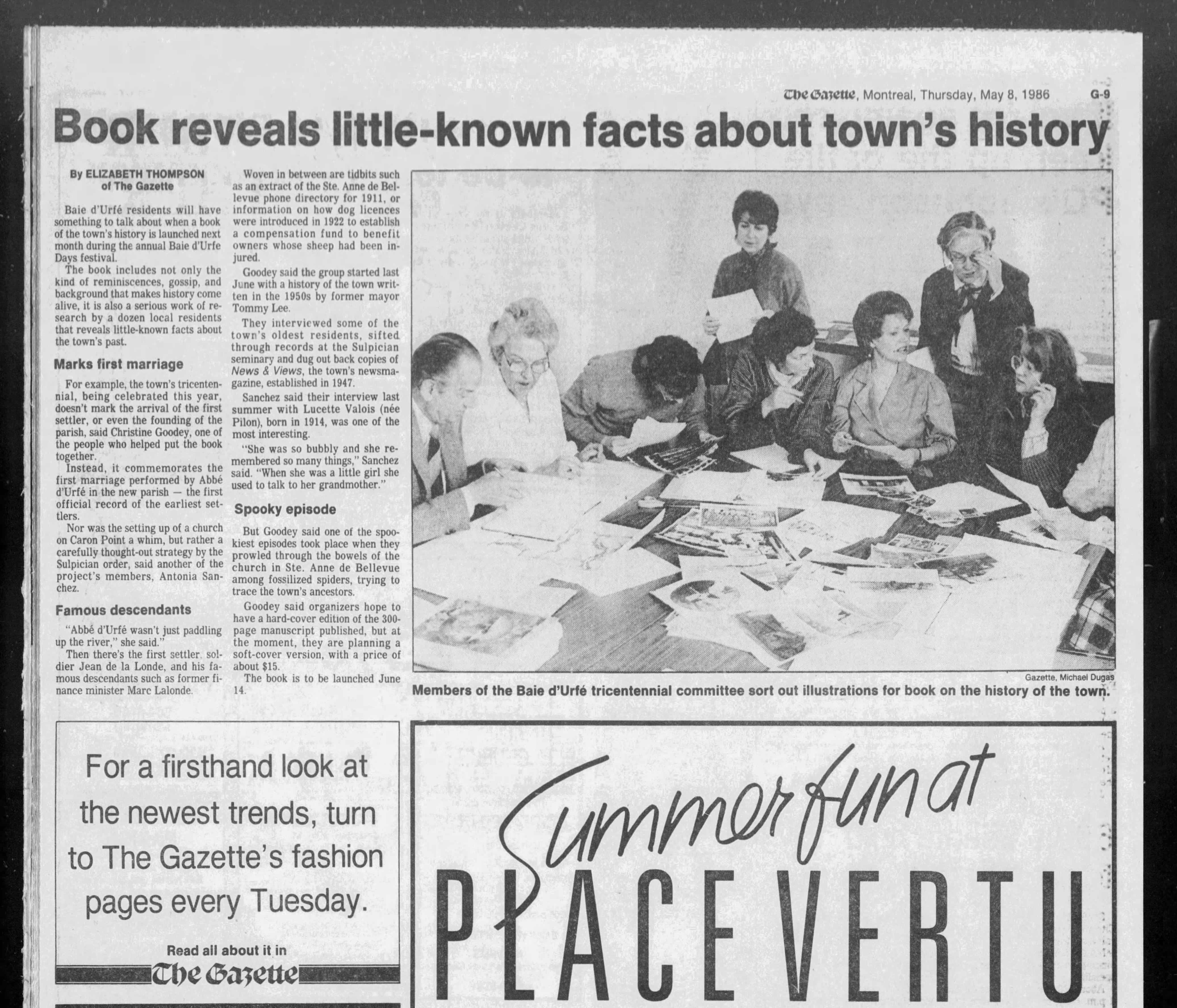 Gazette article from May 1986 with photo of the Tricentennial Book Committee members, click on the picture to read it.